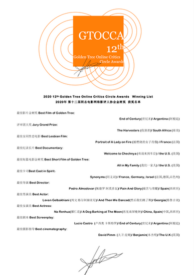 GTOCCA has 10 categories, including Best Film of Golden Tree, Jury Grand Prize, Best Documentary, Best Lesbian Film, Best Cast in Spirit, Best Director, Best Actor, Best Actress, Best Screenplay, Best Cinematography. Our tenets for selecting winners are not derived from competitionism, but rather epistemology valuing individuals' experiences.